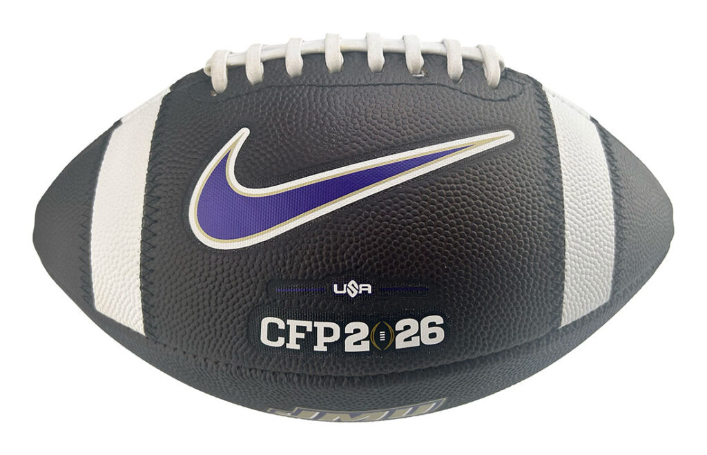 The Official 2025-26 CFP JMU Nike Vapor Elite game ball handcrafted by Big Game. Go Dukes!