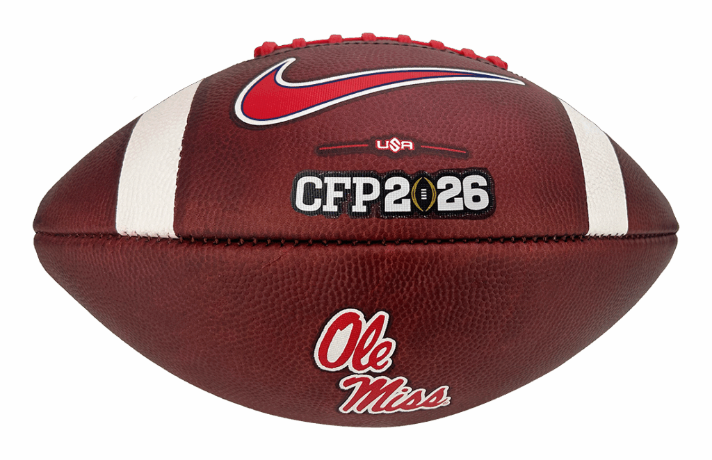 The Official 2025-26 CFP Ole Miss Nike Vapor Elite game ball handcrafted by Big Game. Hotty Toddy ready.