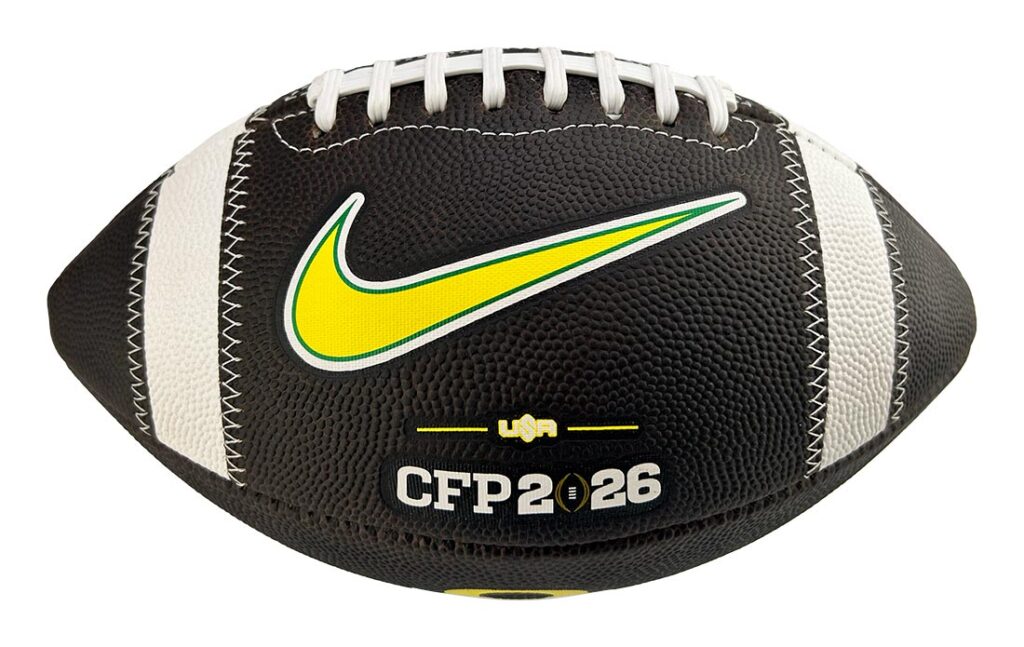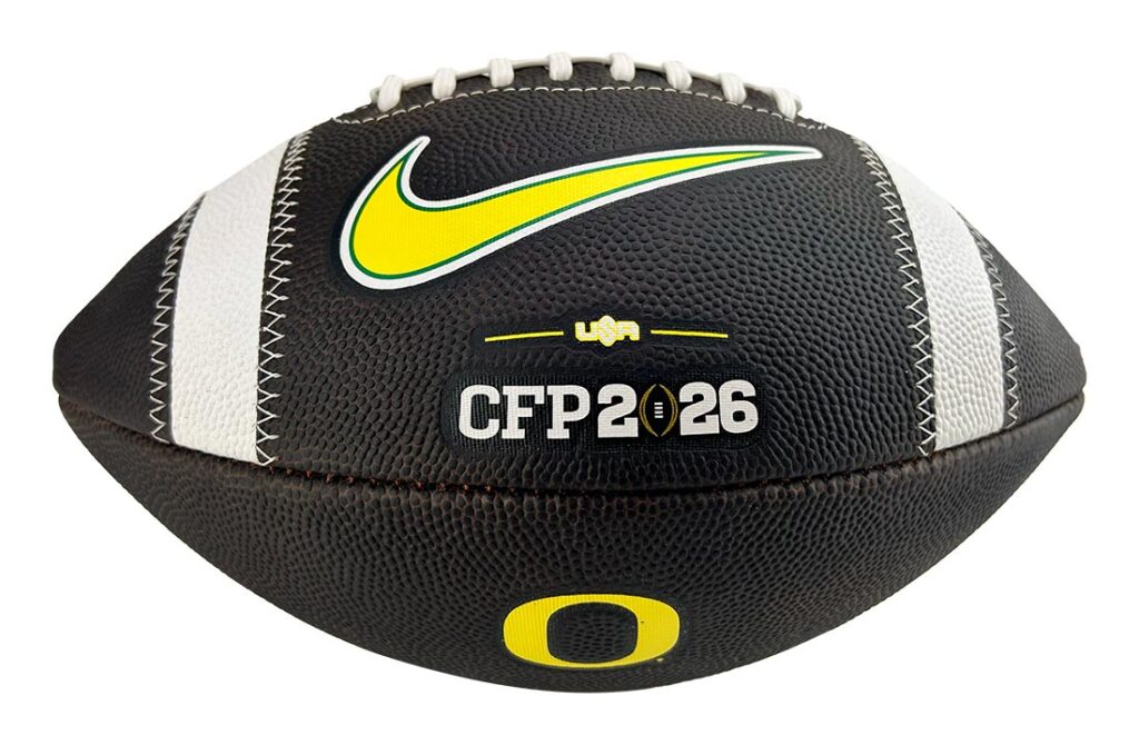 Buy the Oregon Ducks Official 2025-26 CFP Limited Edition Nike game football, only at Big Game!