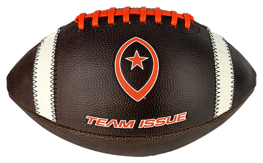 The Team Issue Youth Football can now be customized with your choice of colors, logos, and wordmarks to give your game footballs a professional look. Every football we sell is made by hand in our Dallas, Texas factory for millions of players and coaches across the country.